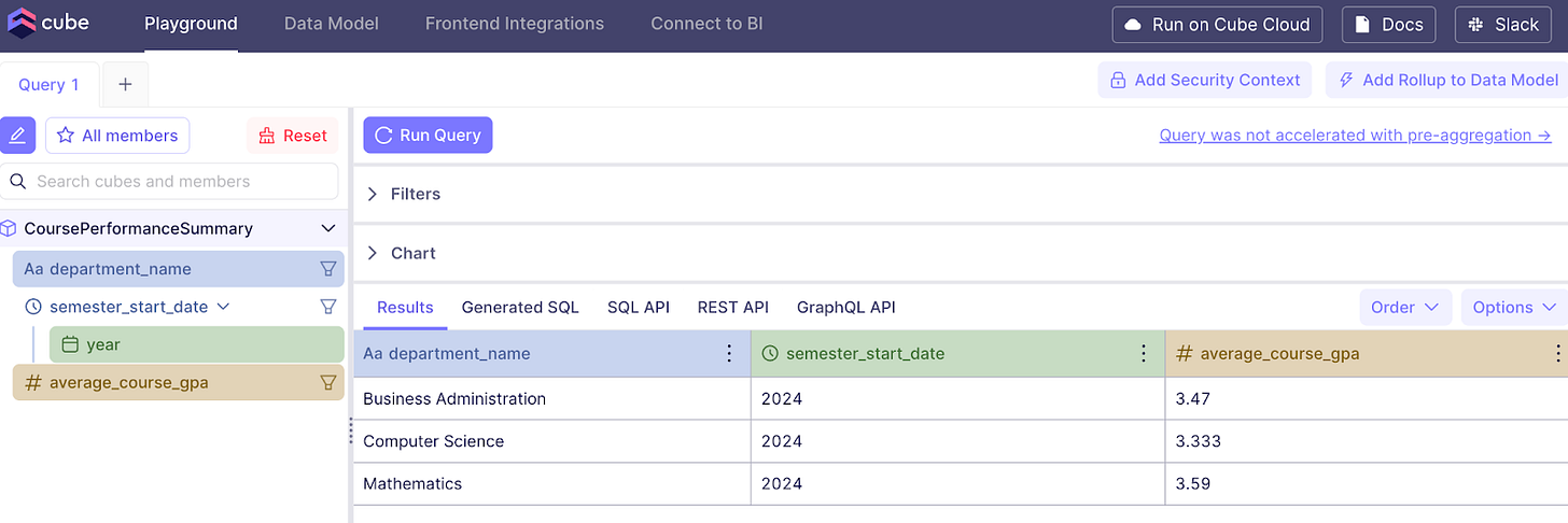 Cube.js API: http://localhost:4000 — REST and GraphQL endpoints