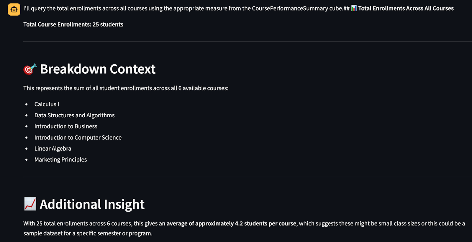And just like that, everything works. Metrics stay consistent, dimensions are respected, and the conversation maps cleanly to the semantic layer