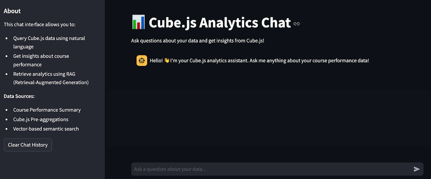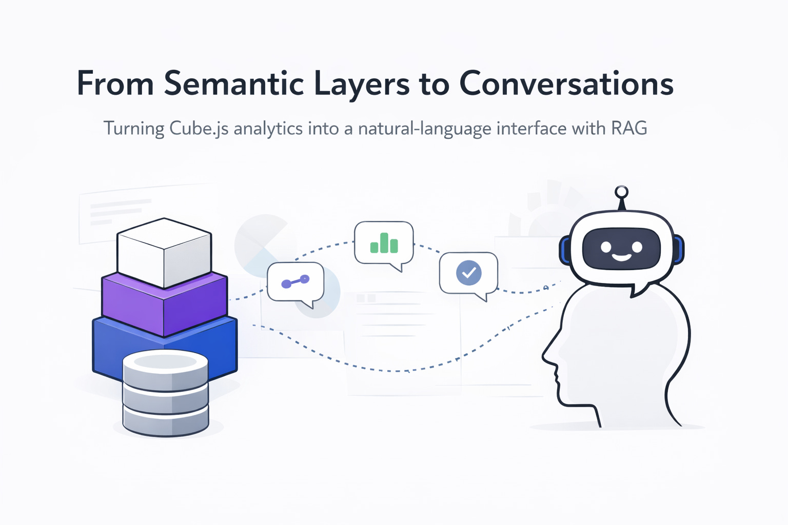 In this post, we explore how to turn Cube analytics into a natural-language interface using RAG. We use RAG to store and retrieve Cube metrics and dimensions, allowing each user query to be grounded in the correct semantic context before any query is generated or executed. This keeps conversations aligned with predefined business logic while remaining flexible and intuitive for users.